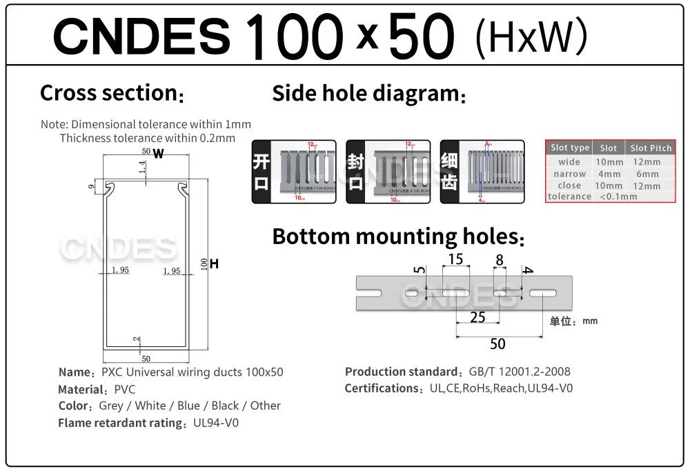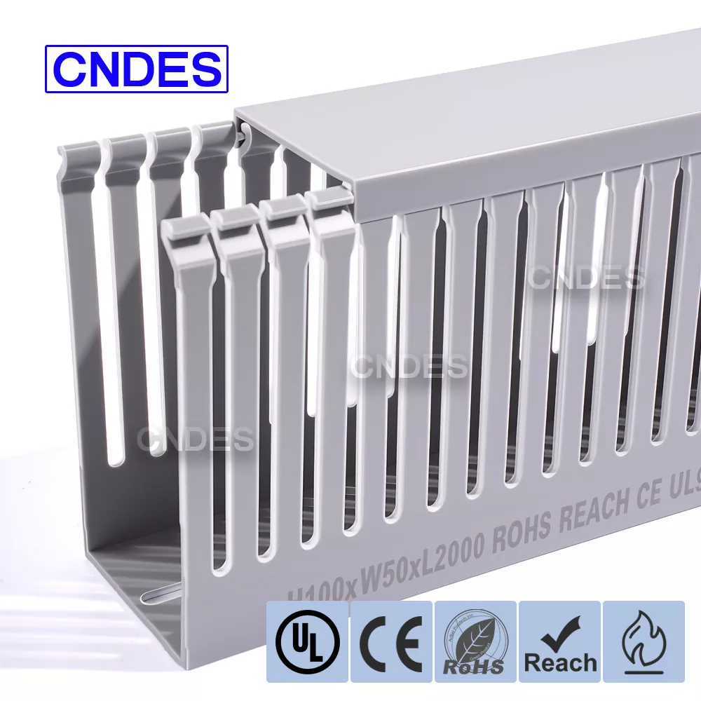 Prispôsobený 100 × 50 PVC káblový kanál CNDES je praktické a efektívne riešenie správy káblov. Túto veľkosť káblového žľabu sme vyvinuli, aby sme vyvážili kapacitu, flexibilitu a nákladovú efektívnosť, vďaka čomu je jedným z najpoužívanejších modelov v rozvodných paneloch, komerčných budovách a priemyselných zariadeniach.