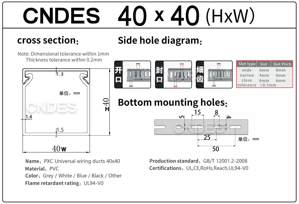 Môžete si byť istí, že si kúpite kvalitné 40 × 40 PVC káblové vedenie s krytom z našej továrne (CNDES). Výška 40 mm a šírka 40 mm.