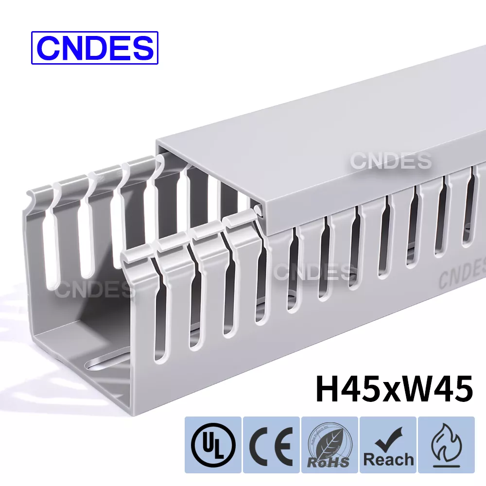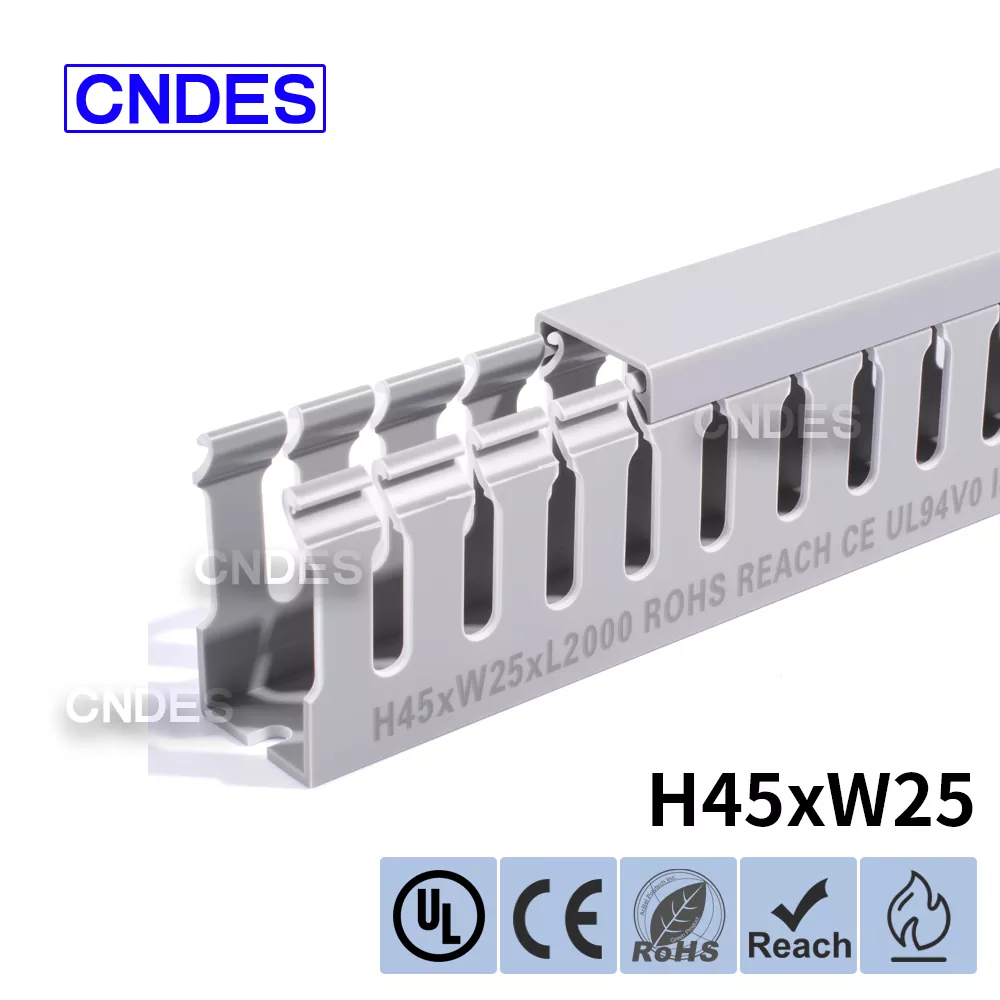 Predstavujeme prispôsobený 45 mm vysoký štrbinový kryt PVC vodiča od CNDES, vaše riešenie pre efektívne vedenie káblov v rôznych aplikáciách. Či už navrhujete nový elektrický panel, zlepšujete nastavenie elektroinštalácie vášho stroja alebo vylepšujete elektrický systém vášho domova, náš výškovo štrbinový kryt PVC drôtu poskytuje dokonalú rovnováhu medzi funkčnosťou a estetickou príťažlivosťou.