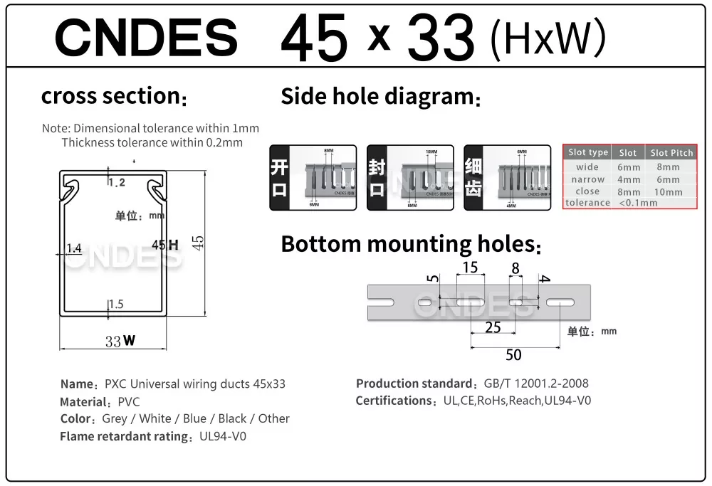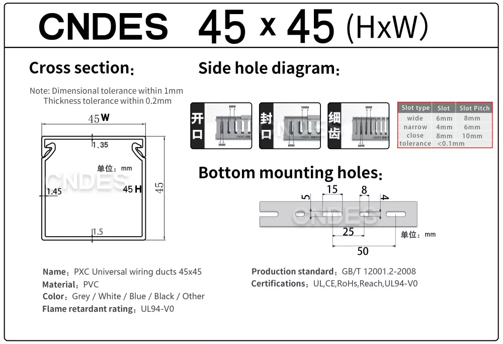 Ako profesionálny výrobca by sme vám radi poskytli 45 mm štrbinový kryt PVC drôtu CNDES s výškou 45 mm. Vrátane 45*25, 45*33, 45*45.