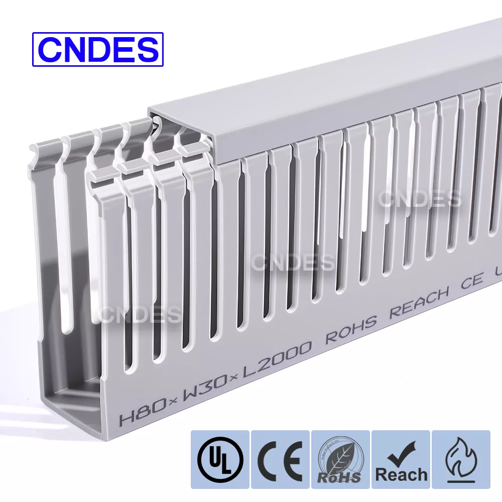 Vysokovýkonné 80×30 PVC káblové kanály s otvoreným slotom CNDES sú navrhnuté pre efektívne, organizované a flexibilné vedenie káblov v priemyselných ovládacích paneloch, elektrických skriniach a automatizačných skriniach. S výškou iba 30 mm a šírkou iba 80 mm poskytujú tieto kompaktné kanály riešenie správy káblov s vysokou hustotou a zároveň uľahčujú inštaláciu, údržbu a budúce inovácie.
