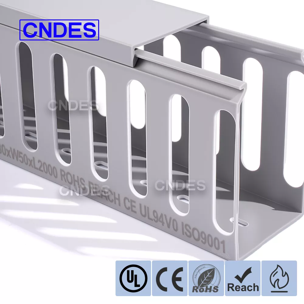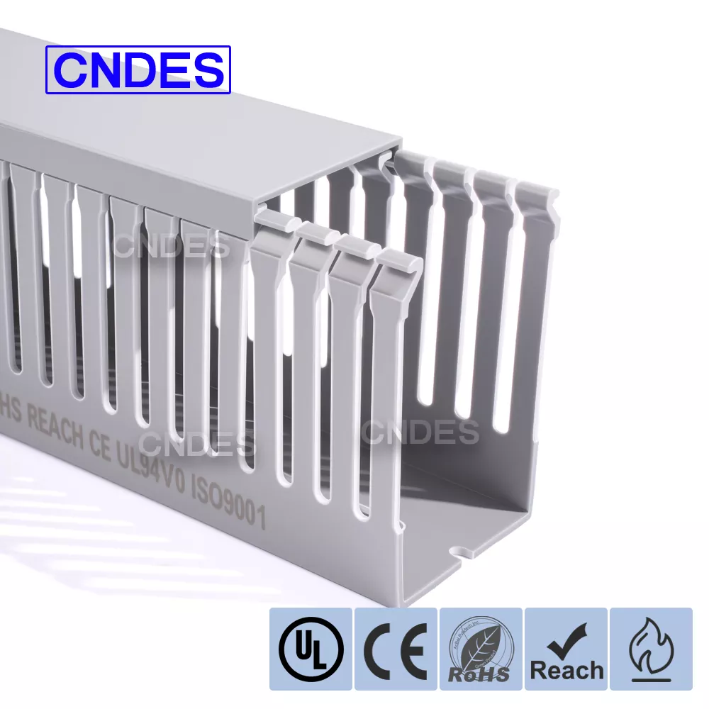 CNDES je profesionálny výrobca PVC štrbinových káblových žľabov so sídlom v Číne. Tu si predstavíme náš 80×50 štrbinový PVC panelový káblový organizér, kde 80*50mm predstavuje káblový žľab s výškou 80mm a šírkou 50mm.