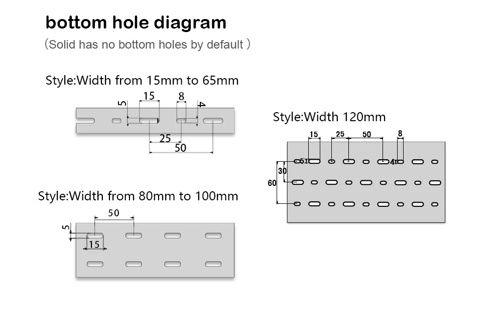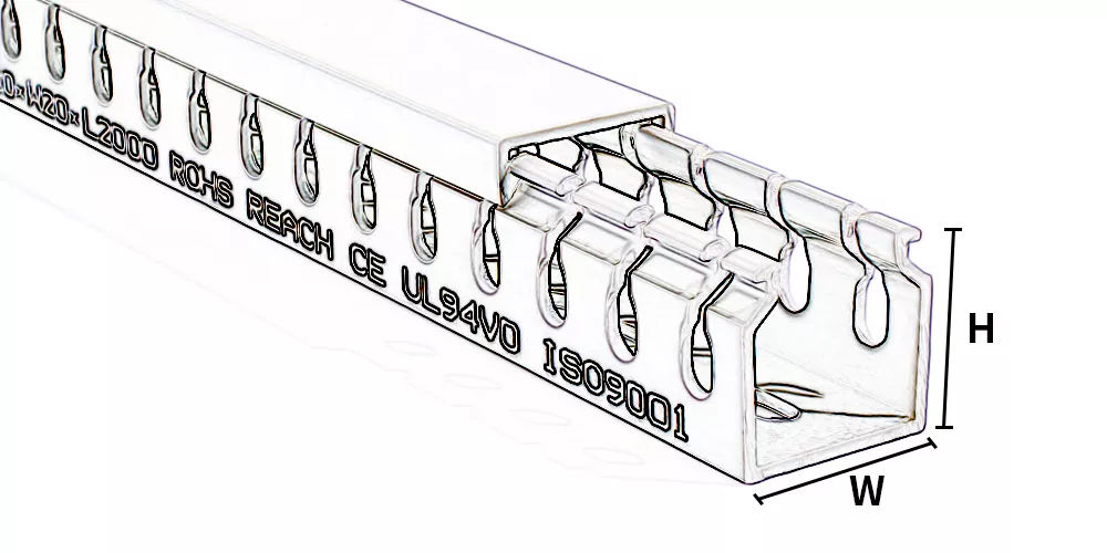 Špecifikácie káblového žľabu sú vyjadrené ako výška * šírka, pričom jednotka je mm. Najprv určte požadovanú veľkosť káblového žľabu, ako je výška 80 mm a šírka 40 mm. Potom vyberte šírku výstupného otvoru na základe hrúbky vedenia, buď široké zuby (8 mm) alebo jemné zuby (4 mm). Odporúča sa, aby skutočný kábel nezaberal viac ako 70 % priestoru žľabu.