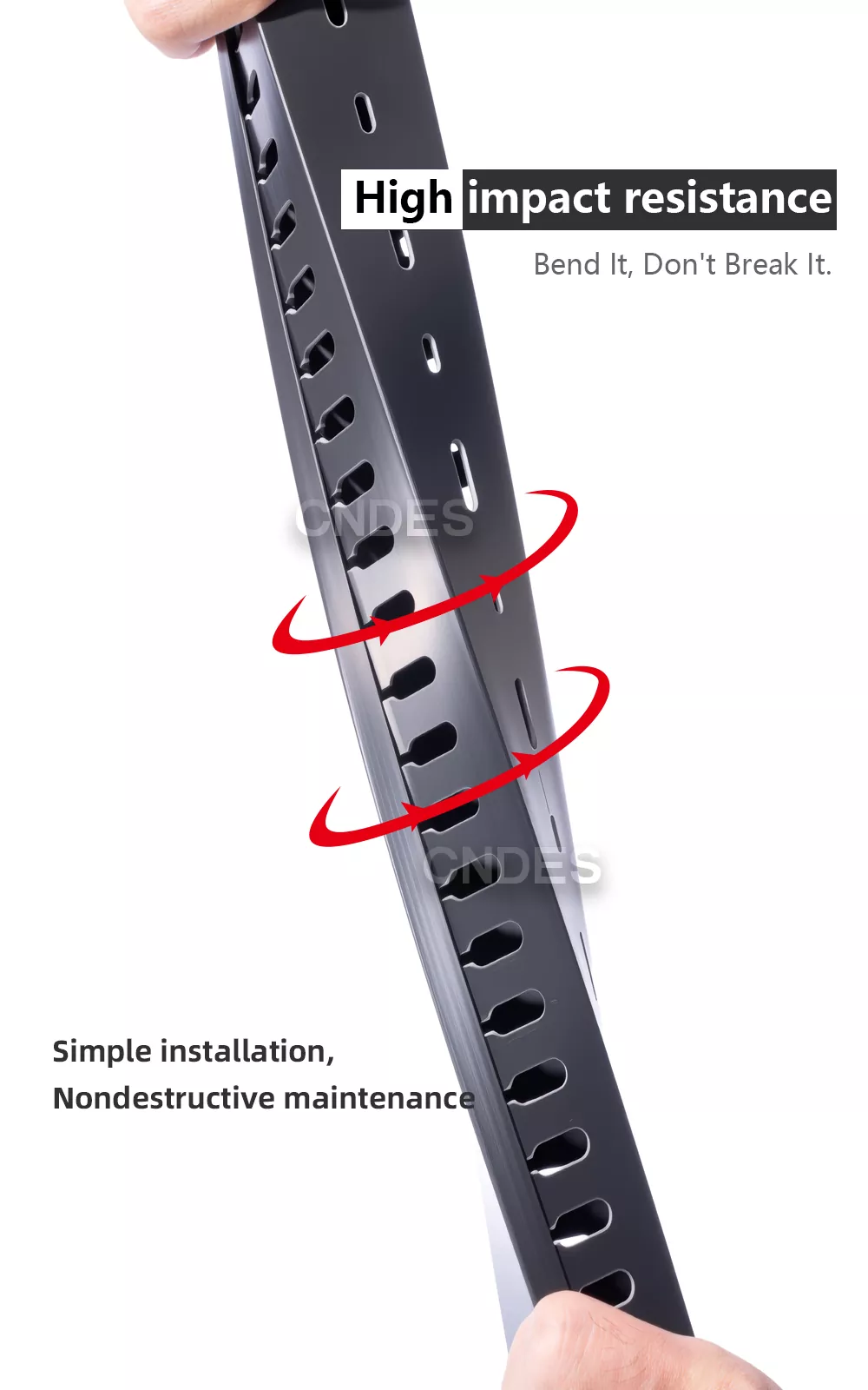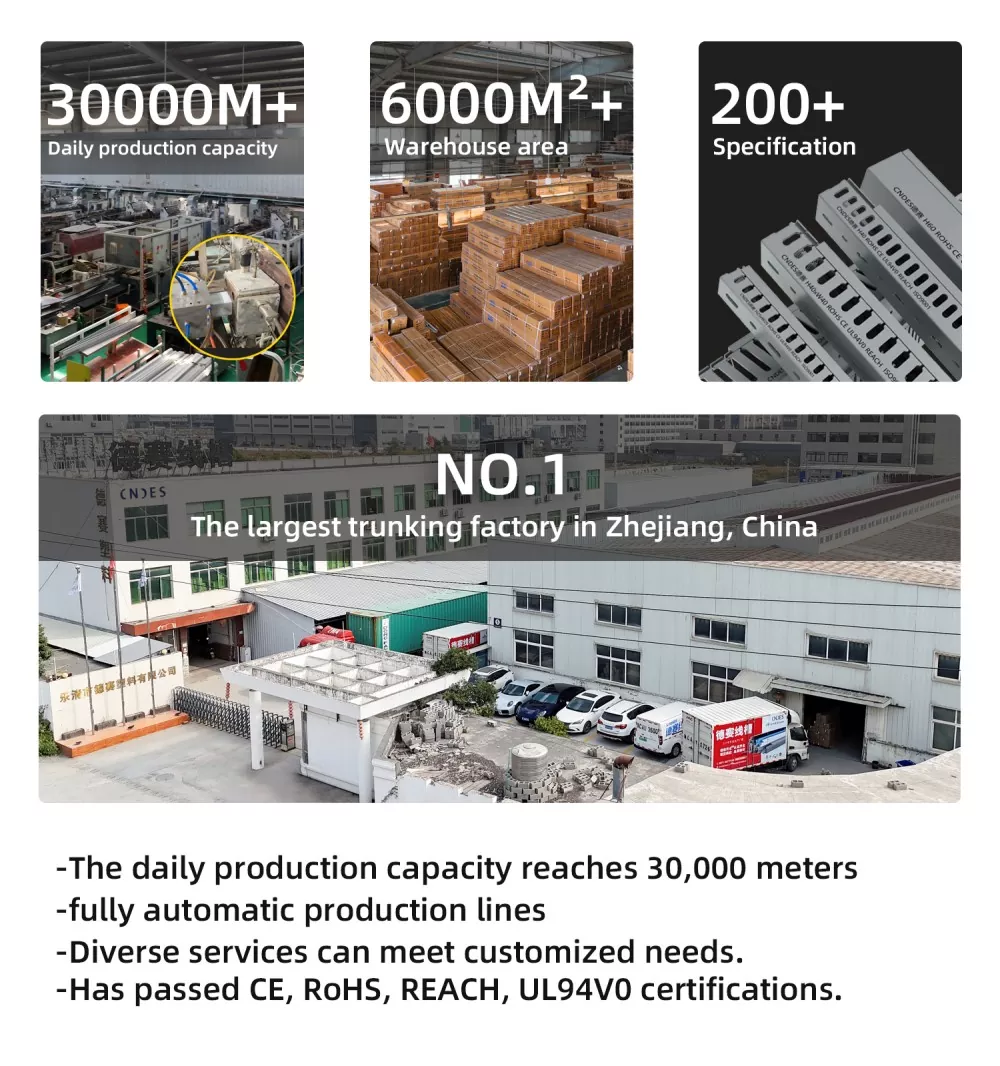 CNDES, ako profesionálny R&D a výrobná továreň Black Slotted PVC Wiring Duct v Číne, sa špecializuje na hromadnú výrobu, prísnu kontrolu kvality ISO a OEM/ODM servis. Čierne kryty sa bežne používajú v scenároch vyžadujúcich skryté vedenie (ako sú domáce kiná alebo kancelárie) alebo na rozlíšenie medzi rôznymi funkčnými obvodmi (napr. vysokonapäťové a nízkonapäťové vedenie), a tým efektívnosť.